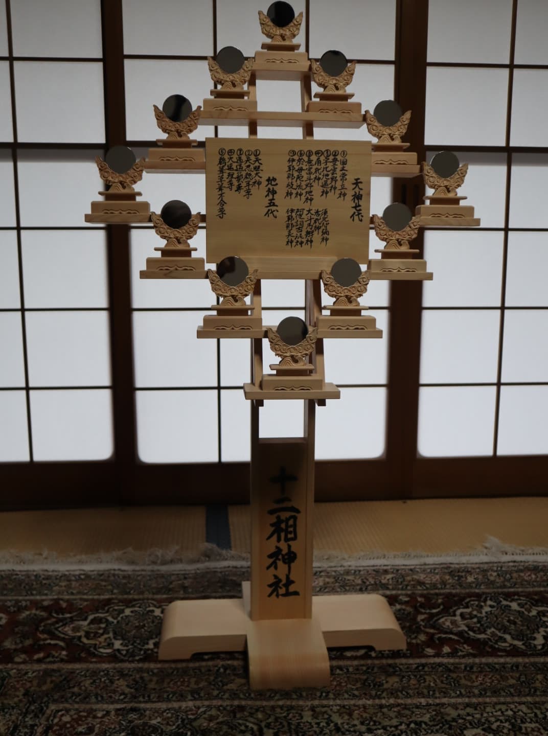 明智光秀近江出身説を調べるうちに、美濃南濃町の十二相神社に「佐目より、天神七代地神五代の十二柱神を勧請」とあり、神社の名前の由来などが新たにわかりました。江戸以前は、十二相権現社でしたので神仏習合でしたが、現在のご祭神の少彦名神、ホタ神様と共に、唯一名を表していた「十二の灯火」のように、神鏡十二面を配した台座を奉納する事になりました。
